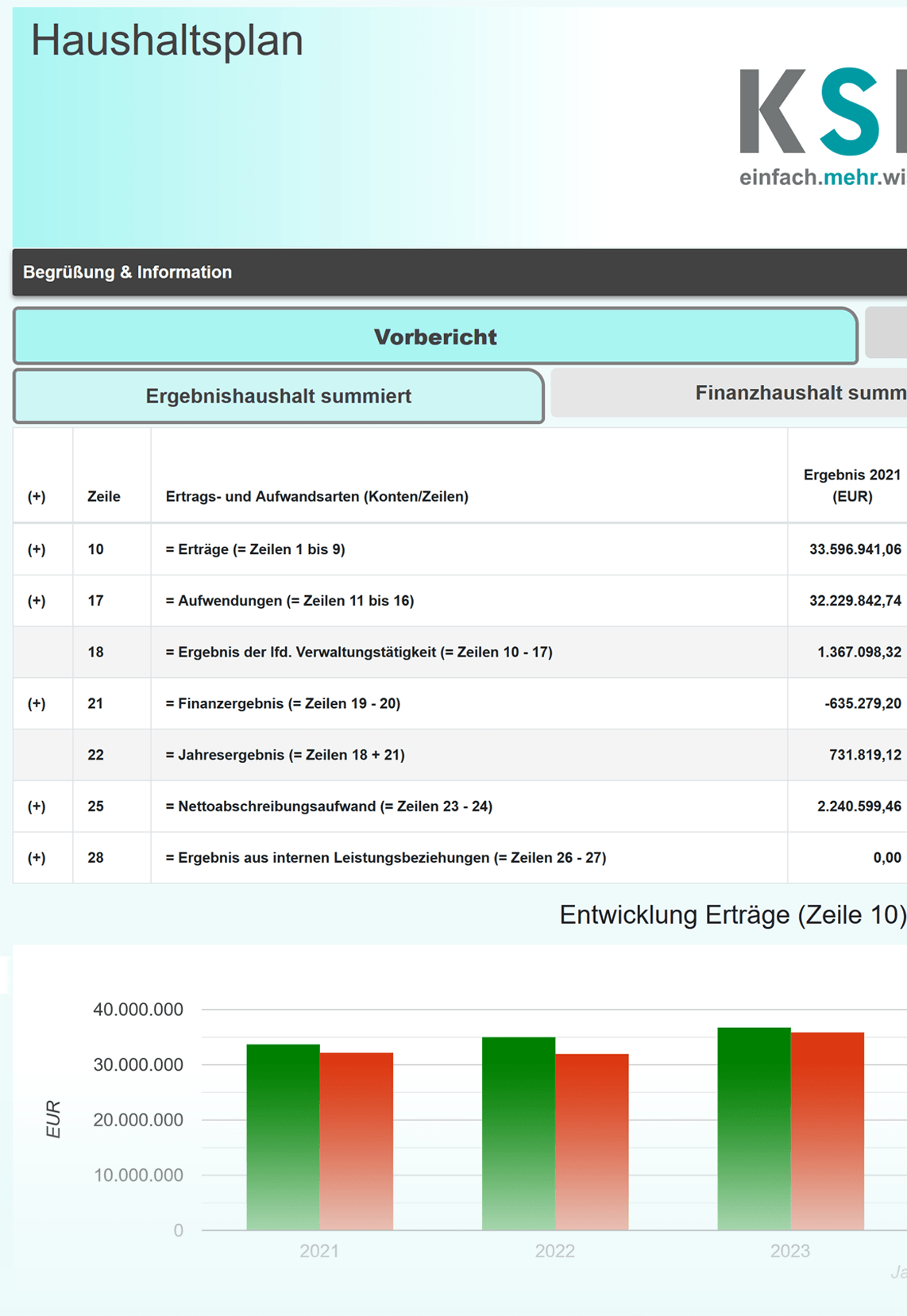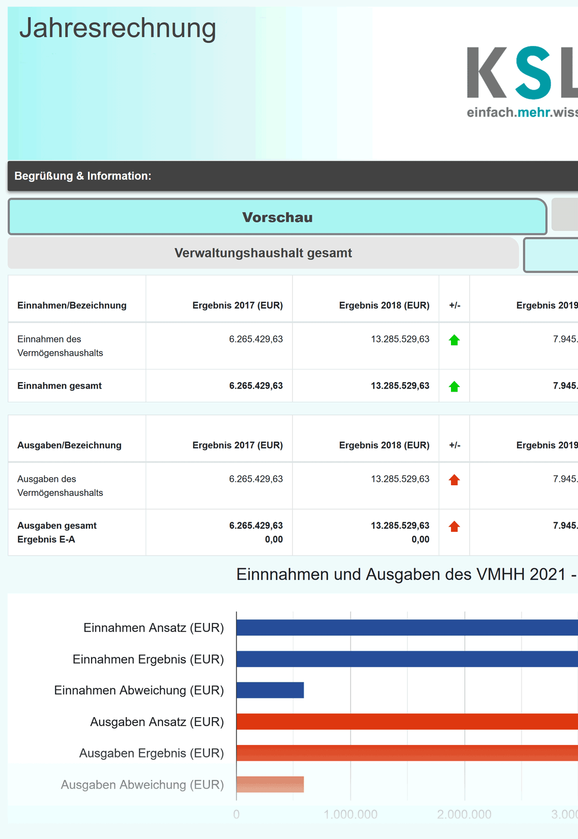 Inklusive Vergleichsmöglichkeiten einzelner Planstufen bzw. einer Vergleichsmöglichkeit zwischen Nachtragsplan und Haushaltsplan.